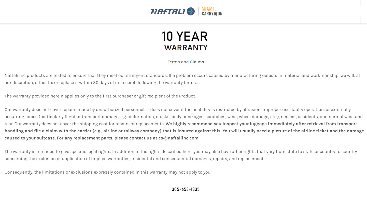 • Warranty: 10 years parts warranty provided by Naftali Inc..