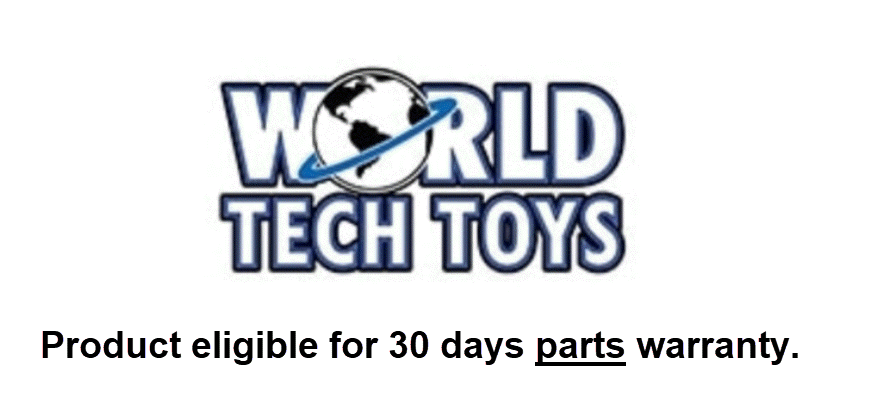 - Warranty: 30 days parts warranty provided by World Tech Toys.