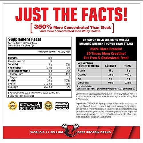 CARNIVOR Beef Protein Isolate delivers all the muscle building power of beef with greater amino acid levels than other protein sources used in supplements, including whey, soy, milk and egg. CARNIVOR Beef Protein Isolate (BPI) is even 350% more concentrated in anabolic muscle building aminos than a prime sirloin steak! And it contains no fat or cholesterol! Plus CARNIVOR is one of the most delicious protein shakes you’ll ever try!
