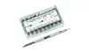 FeaturesAll metal construction for guaranteed durabilityPointed pin and small fork tip on one end and larger fork tip on the other. Pins can be easily removed for replacementKnurled handle for easy and secure holdingLight-weight and portableReplacement tooltips included SpecificationsLength: 130mmWeight: 2 OuncesMaterial: SteelTool Tip size:Pointed end: 0.8mm x 5mmSmall fork end: 1.3mmLarge fork end: 3.25mm Hammer, punches and strap holderThis set of tools offer an alternative method to remove pins. Place the strap in the holder, align the punch with the pin, then use the hammer to dislodge the pins. This method is most effective for stuck pins.Four punches with various sizesPolymer side on the hammer for more delicate applicationsStrap holder accommodates different straps thickness up to 6mm 360 stainless steel double flange watch band spring barsSpring bars are separated by their sizes and conveniently stored in 18 compartments in one hard clear case. Items IncludedOne (1) metal watch link remover (pusher) with two spare tipsOne (1) watch hammerFour (4) punchesOne (1) strap holder360 stainless steel spring bars with storage case