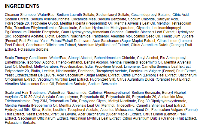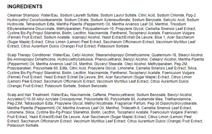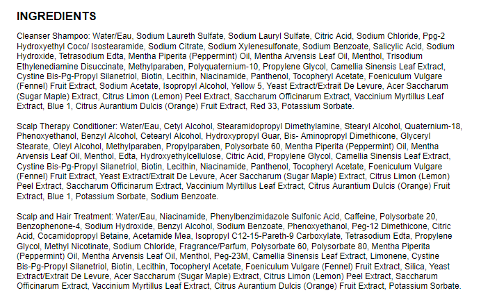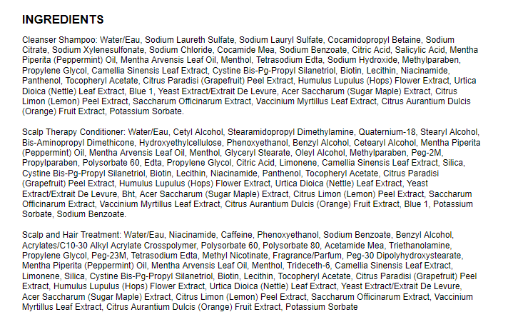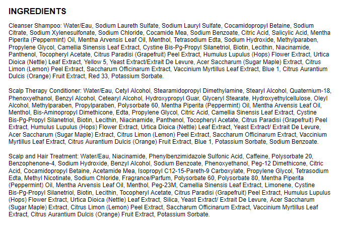 Nioxin System 1 Trio:Cleanser Shampoo 10.1 oz: Specifically formulated for fine, natural, normal to thin-looking hair. It helps remove follicle-clogging sebum, fatty acids, and environmental residues from the scalp and hair, providing a refreshed and healthy scalp environment.Scalp Therapy Conditioner 10.1 oz: This lightweight conditioner helps to provide resilience and control moisture balance for fine, normal to thin-looking hair. It amplifies hair texture and strengthens against damage.Scalp & Hair Treatment 3.38 oz: A leave-in treatment that contains antioxidants and botanicals to refresh the scalp, amplify hair texture, and protect against breakage. It provides a healthy scalp environment for fuller, denser-looking hair.Nioxin System 2 Trio:Cleanser Shampoo 10.1 oz: Formulated for fine, natural, noticeably thinning hair. It helps to remove follicle-clogging sebum, fatty acids, and environmental residues from the scalp and hair, creating an optimal scalp environment.Scalp Therapy Conditioner 10.1 oz: A lightweight conditioner that helps to provide hair resilience and control moisture balance for natural, noticeably thinning hair. It strengthens hair against damage and amplifies hair texture.Scalp & Hair Treatment 3.38 oz: A leave-in treatment that contains antioxidants and botanicals to refresh the scalp, amplify hair texture, and protect against breakage. It provides a refreshed scalp environment for noticeably thinning hair.Nioxin System 3 Trio:Cleanser Shampoo 10.1 oz: Specifically designed for fine, chemically treated, normal to thin-looking hair. It removes follicle-clogging sebum, fatty acids, and environmental residues from the scalp and hair, creating an optimal scalp environment.Scalp Therapy Conditioner 10.1 oz: A lightweight conditioner that helps to provide hair resilience and control moisture balance for fine, chemically treated, normal to thin-looking hair. It strengthens hair against damage and amplifies hair texture.Scalp & Hair Treatment 3.38 oz: A leave-in treatment that contains antioxidants and botanicals to refresh the scalp, amplify hair texture, and protect against breakage. It provides a refreshed scalp environment for fine, chemically treated hair.Nioxin System 4 Trio:Cleanser Shampoo 10.1 oz: Formulated for fine, noticeably thinning, chemically treated hair. It helps to remove follicle-clogging sebum, fatty acids, and environmental residues from the scalp and hair, creating an optimal scalp environment.Scalp Therapy Conditioner 10.1 oz: A lightweight conditioner that helps to provide hair resilience and control moisture balance for fine, noticeably thinning, chemically treated hair. It strengthens hair against damage and amplifies hair texture.Scalp & Hair Treatment 3.38 oz: A leave-in treatment that contains antioxidants and botanicals to refresh the scalp, amplify hair texture, and protect against breakage. It provides a refreshed scalp environment for noticeably thinning, chemically treated hairNioxin System 5 Trio:Cleanser Shampoo 10.1 oz: Specifically designed for medium to coarse, normal to thin-looking, chemically treated hair. It removes follicle-clogging sebum, fatty acids, and environmental residues from the scalp and hair, providing a clean and healthy scalp environment.Scalp Therapy Conditioner 10.1 oz: A lightweight conditioner that helps to provide hair resilience and control moisture balance for medium to coarse, normal to thin-looking, chemically treated hair. It strengthens the hair shaft and adds moisture, promoting fuller-looking hair.Scalp & Hair Treatment 3.38 oz: A leave-in treatment that contains antioxidants and botanicals to refresh the scalp, amplify hair texture, and protect against breakage. It provides a refreshed scalp environment for medium to coarse, normal to thin-looking, chemically treated hair.Nioxin System 6 Trio:Cleanser Shampoo 10.1 oz: Formulated for medium to coarse, noticeably thinning, chemically treated hair. It removes follicle-clogging sebum, fatty acids, and environmental residues from the scalp and hair, creating an optimal scalp environment for thicker-looking hair.Scalp Therapy Conditioner 10.1 oz: A lightweight conditioner that helps to provide hair resilience and control moisture balance for medium to coarse, noticeably thinning, chemically treated hair. It strengthens the hair shaft and adds volume and moisture, promoting thicker-looking hair.Scalp & Hair Treatment 3.38 oz: A leave-in treatment that contains antioxidants and botanicals to refresh the scalp, amplify hair texture, and protect against breakage. It provides a refreshed scalp environment for medium to coarse, noticeably thinning, chemically treated hair, promoting a fuller and thicker appearance"Note:Excluding returns for product defects, a returned item must be in new or unused condition, with all original materials included with the shipment. Refunds will not be given for items returned that do not meet these requirements."