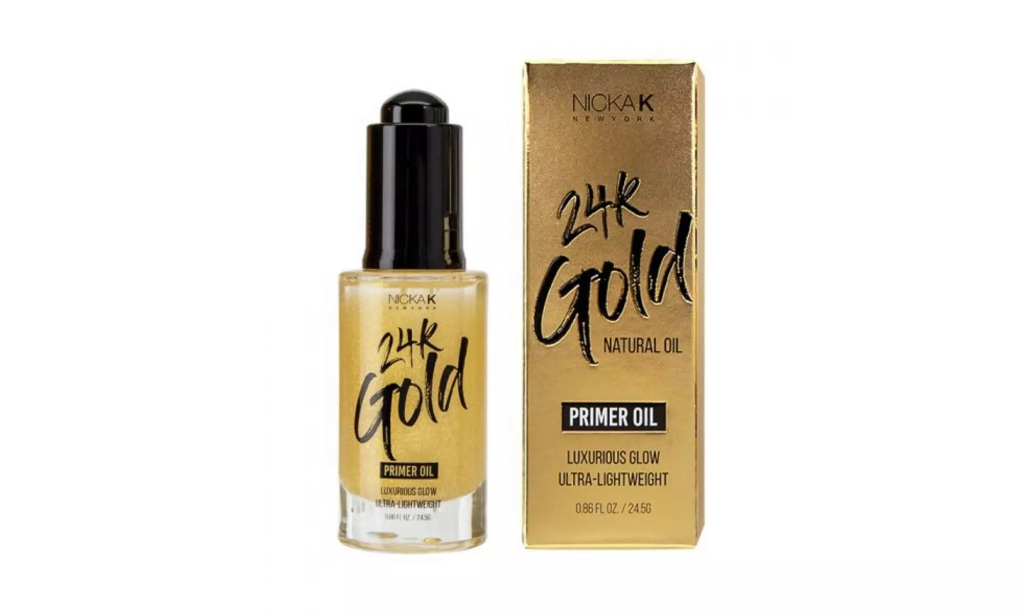NICKAK NY 24k Gold Primer Oil Natural Oil Lightweight NEW IN BOX 0.86 fl oz.SPA-LIKE TREATMENT24.5 g / 0.86 fl ozLuxurious Glow, Ultra-Lightweight, Prep & Moisturize, Non-GreasyPamper your skin for a spa-like treatment to achieve a luminous glow with our Nicka K 24K Gold Primer Oil. This multipurpose weightless primer oil works as a serum to moisturize skin and as a primer to provide a flawless dewy finish.