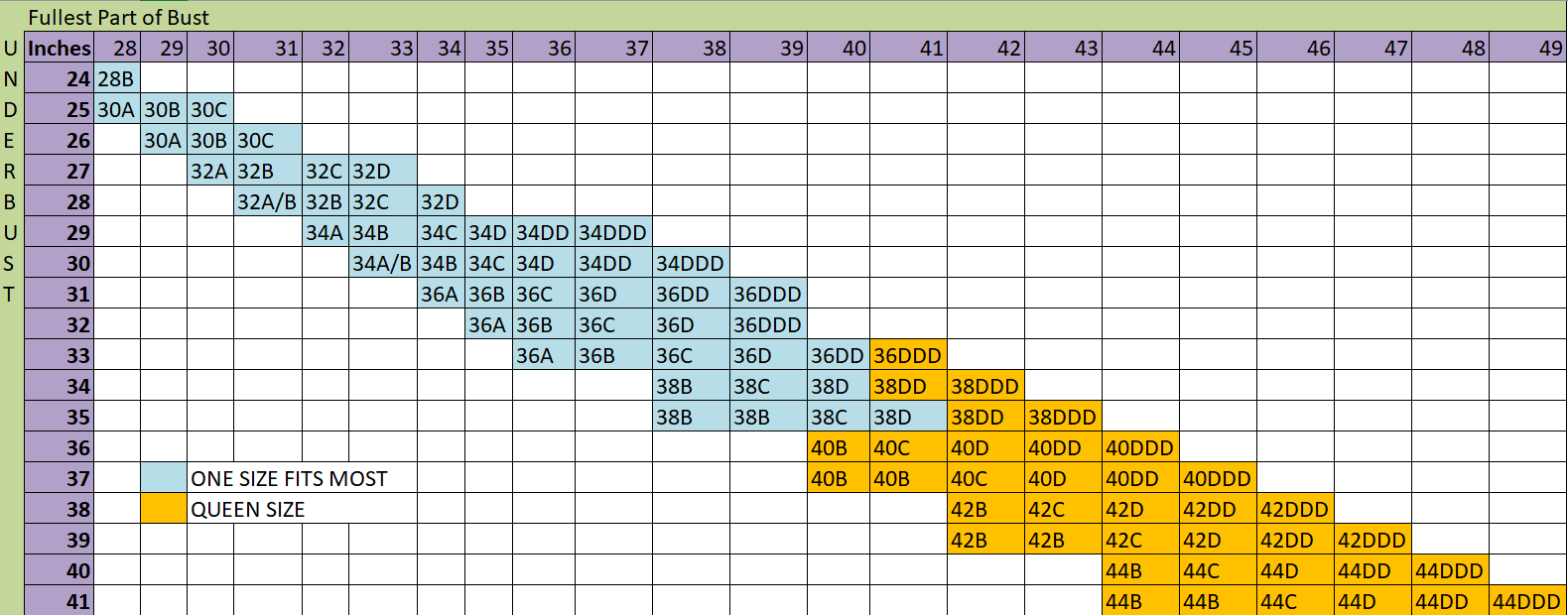 - Sizing Chart: Custom