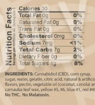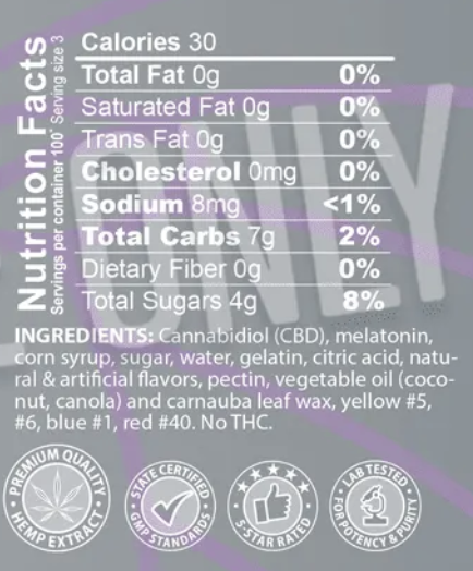 - Serving Size in Milligrams: 30MG per gummy