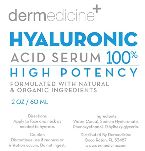 - Included in the box: Dermedicine Anti-Aging Hyaluronic Acid Serum 100% Pure 2oz (1 Pack or 2 Pack)