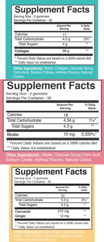 Pure Biotin, Collagen and Tumeric Ginger Gummies (3-Pack)