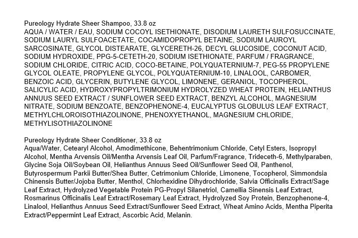 Pureology Hydrate Sheer Shampoo, Conditioner or Set 33.8 Fl. Oz. Pureology Hydrate Sheer Shampoo, 33.8 oz