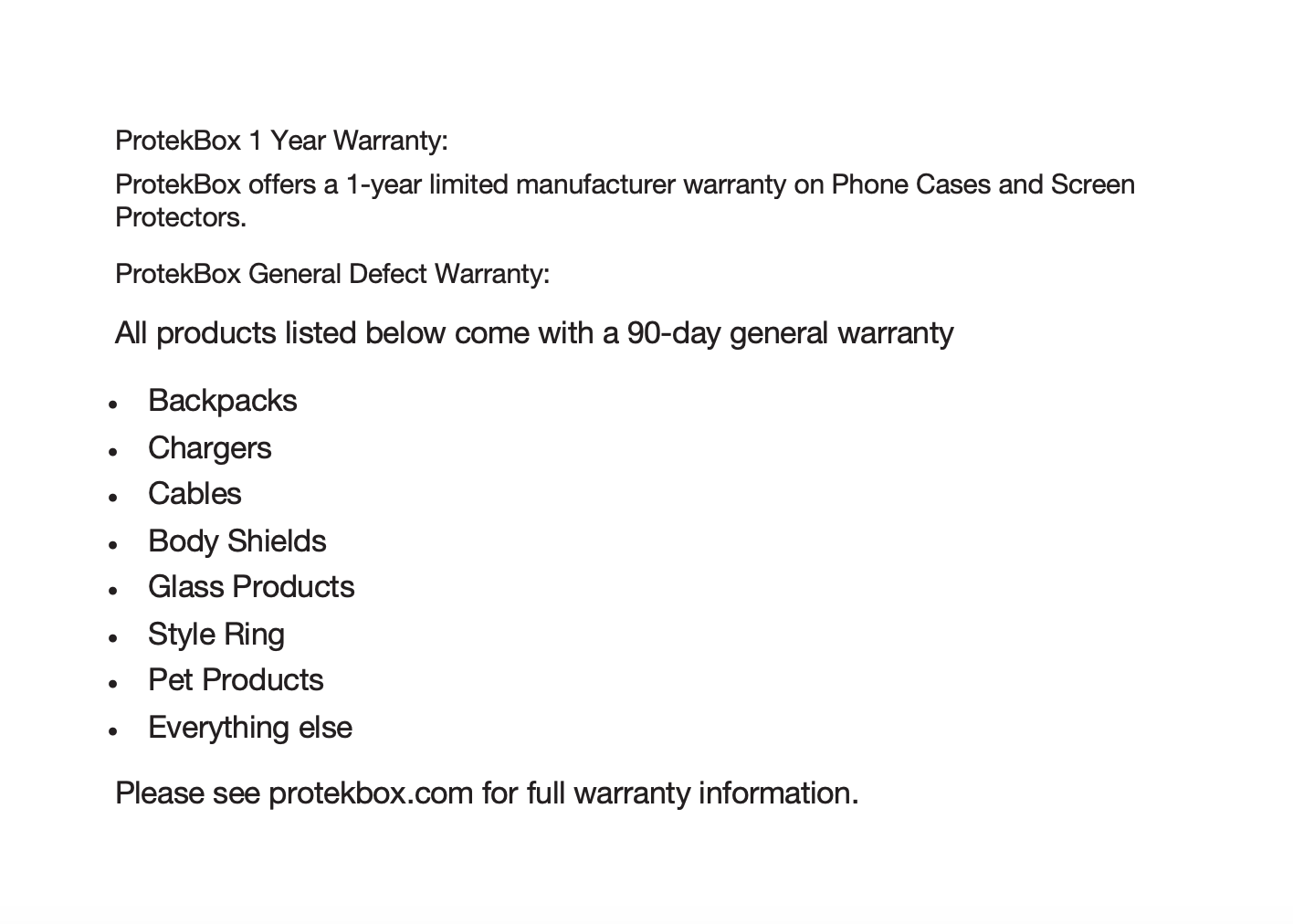 - Warranty: 30 days parts-and-labor warranty provided by protekbox.com.
