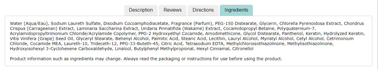 - Ingredients: Label