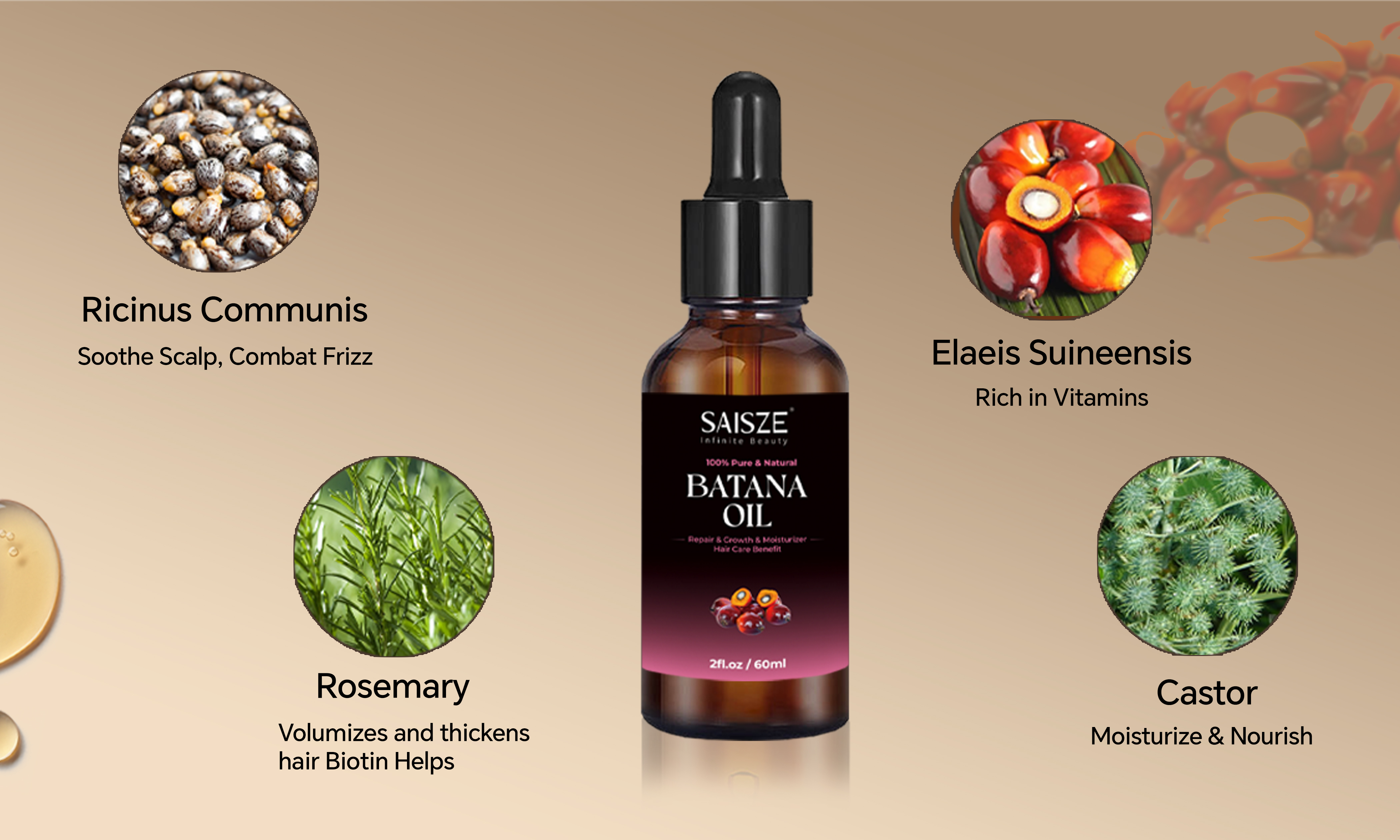 Saisze Organic 100% Pure and Natural Batana Oil or Rosemary Oil for Hair Growth 2 fl.oz Batana Oil N/A