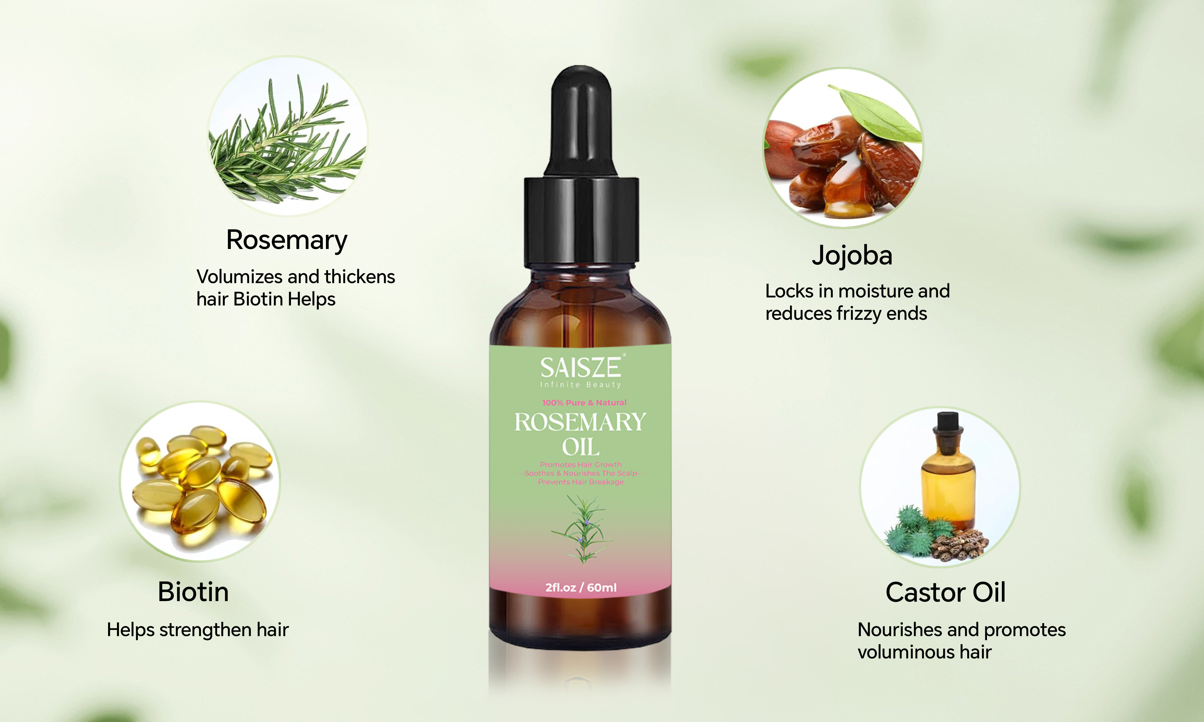 Saisze Organic 100% Pure and Natural Batana Oil or Rosemary Oil for Hair Growth 2 fl.oz Rosemary Oil N/A