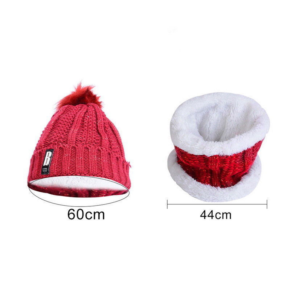 Women Snow Beanie Hat Thick Warm Soft Cable Scarf Winter Knit Set Red One size