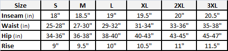 - Sizing Chart: Custom
