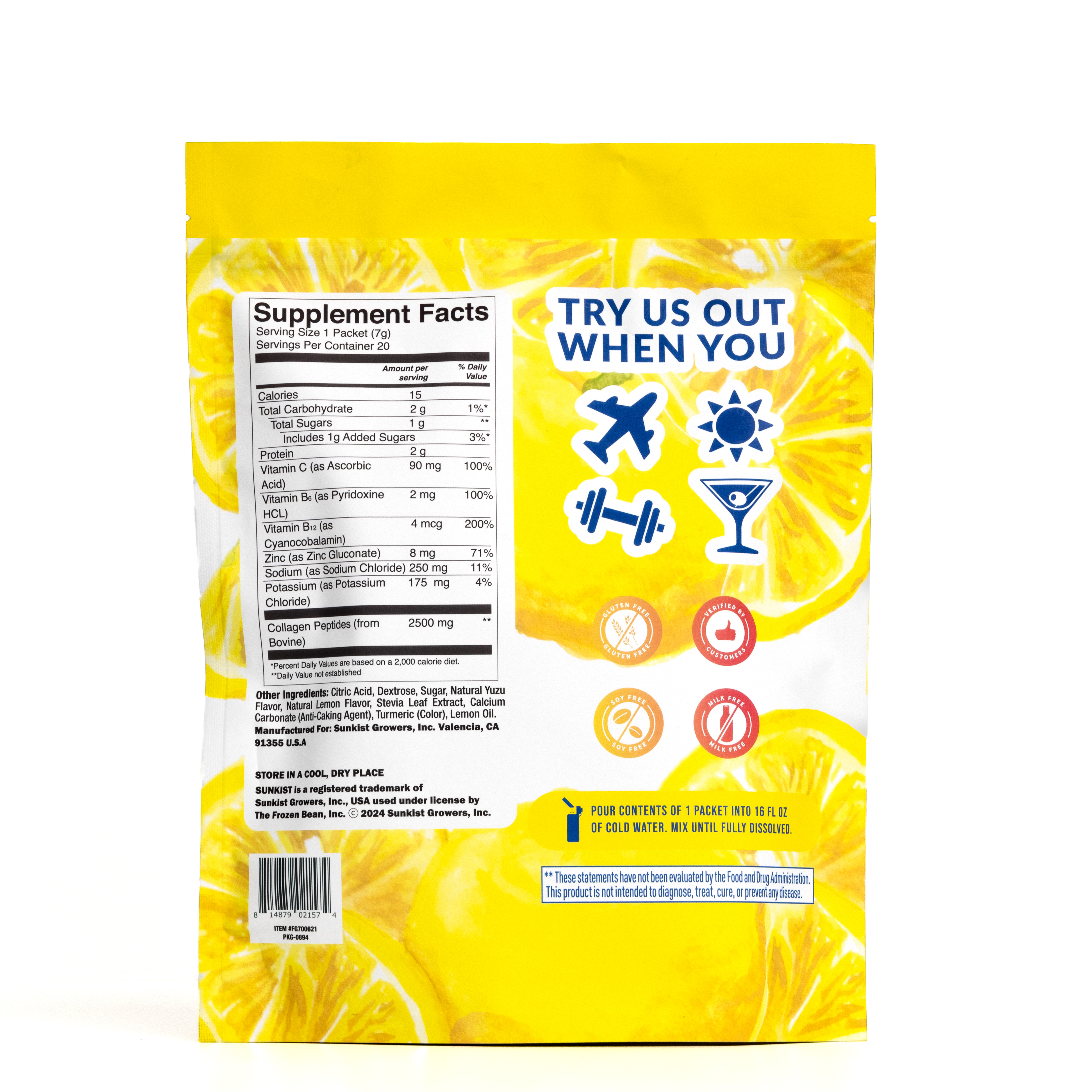 Sunkist Collagen Stick Packets deliver a daily dose of vitamins with a boost of collagen and electrolytes. Perfect for work, workouts, or travel, these convenient stick packs make staying healthy simple and effortless.Three-Pack Combo:* 20-count - cara cara orange* 20 count - yuzu lemon* 20-count strawberry lemon* 1 - 40 oz tumbler bottle (assorted colors)The customer will receive one of the following colored tumblers with each order: black, white, pink, hot pink, light purple, green, and silver