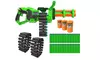 Set includes one full-auto motorized Gatling Blaster; two 18-round ammo belts; three foam targets; and 36 Super Darts