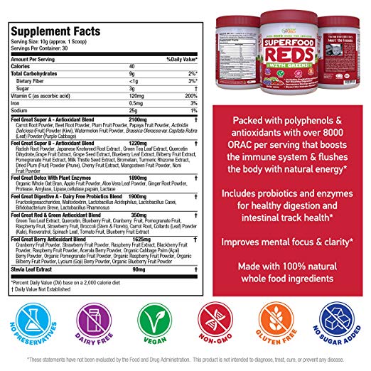 Superfood Vital Reds with Greens Juice Powder by Feel Great 365 30 Servings