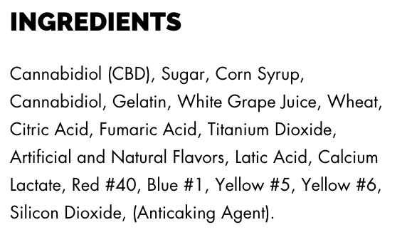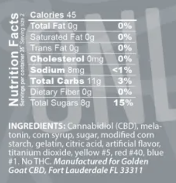 - Serving Instructions: 1 to 3 gummies every 6 hours or as needed