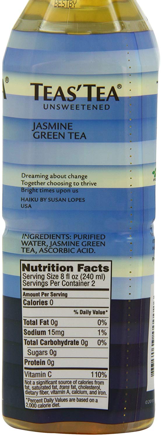 Teas' Tea Unsweetened Jasmine Green Tea 16.9 Ounce (Pack of 12)