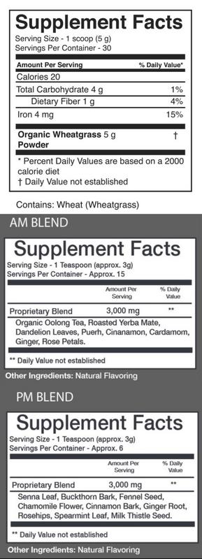 Tiny Tummy Tea AM/PM Detox Tea and Grass Root Naturals Wheatgrass Powder 3-Pack