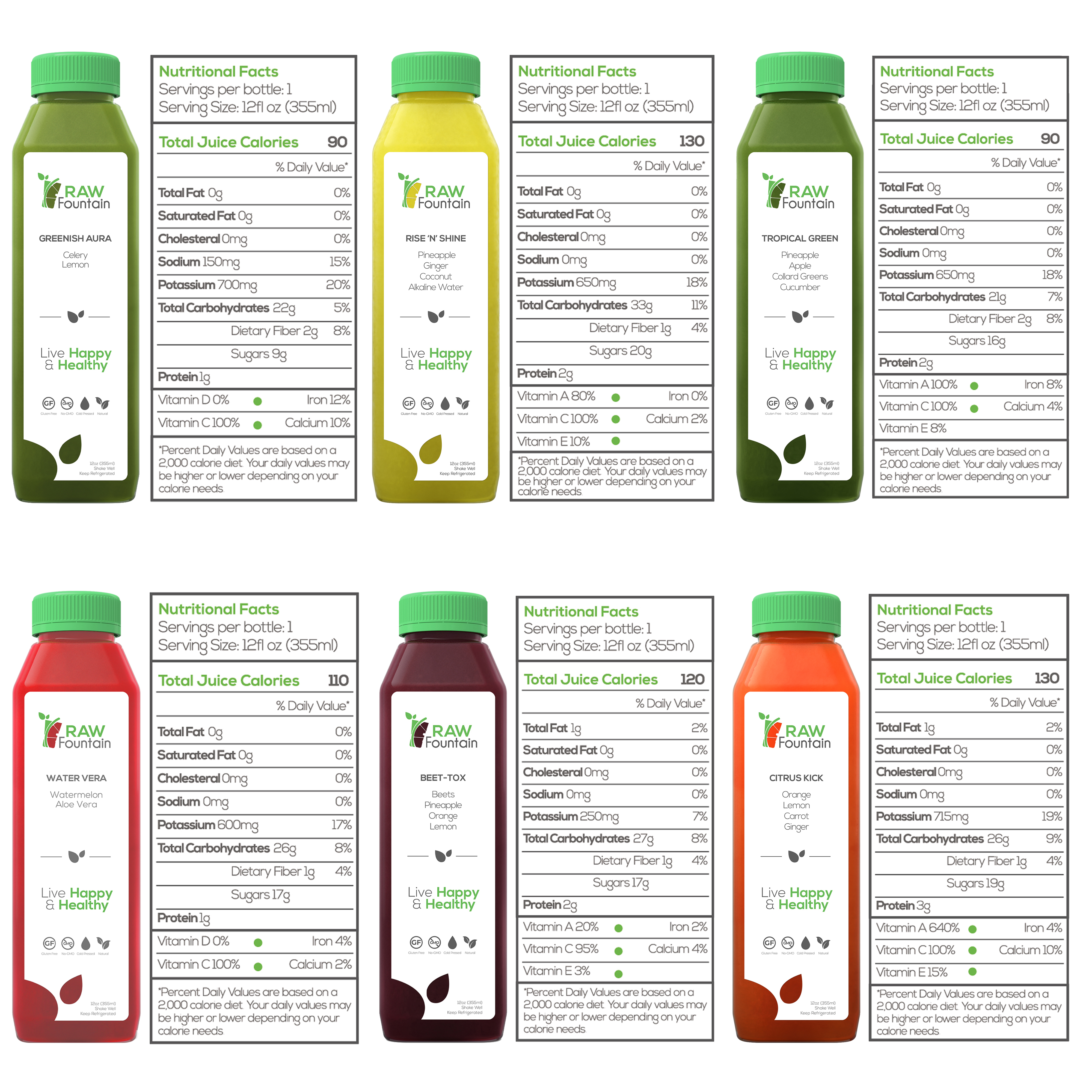 - Raw Fountain juices are made from 100% FRESH produce.