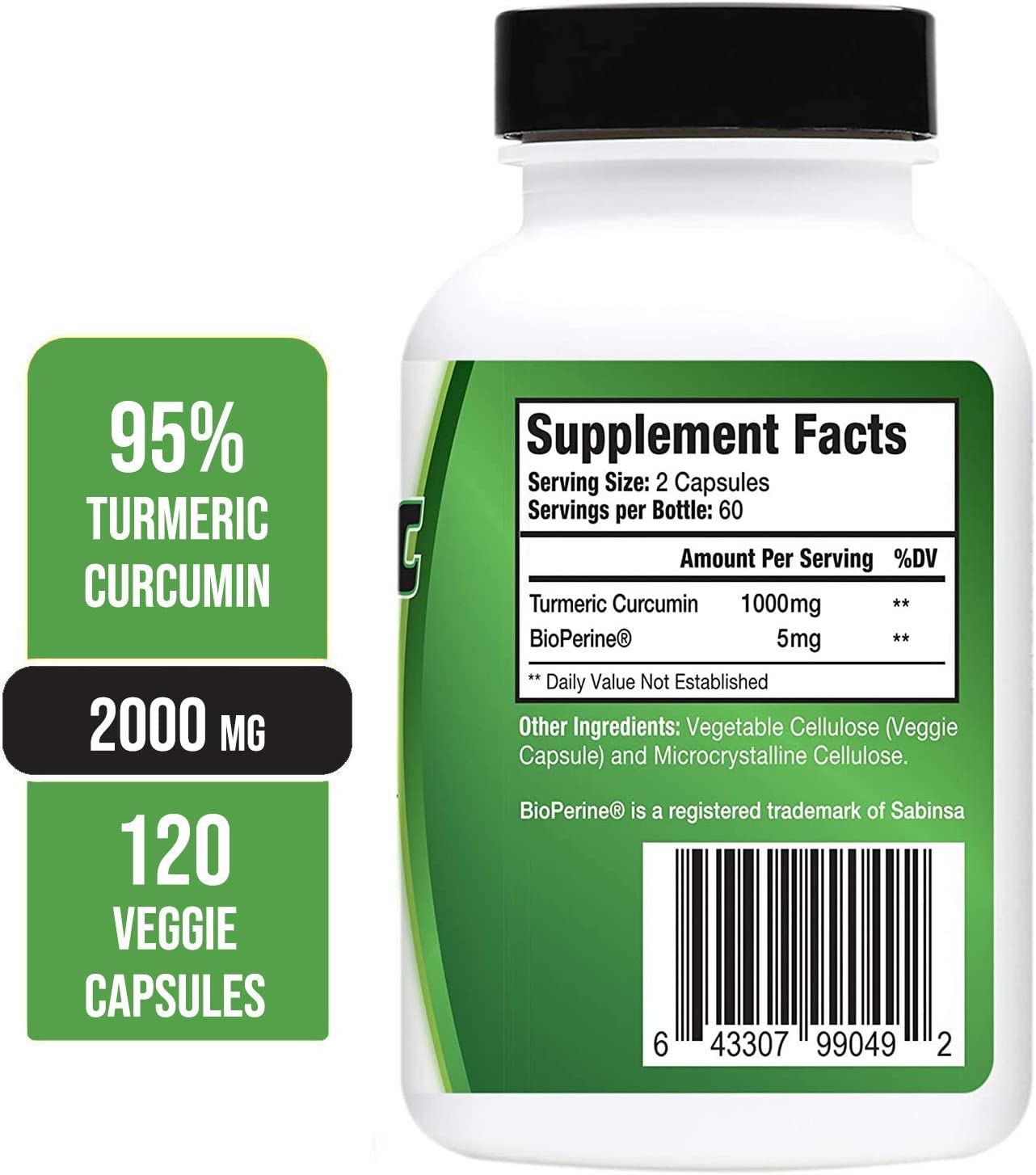 Turmeric Plus 120 Capsules -Turmeric Curcumin 95% Bioperine Black Pepper Extract 120 Capsules (1 PACK) Unflavored