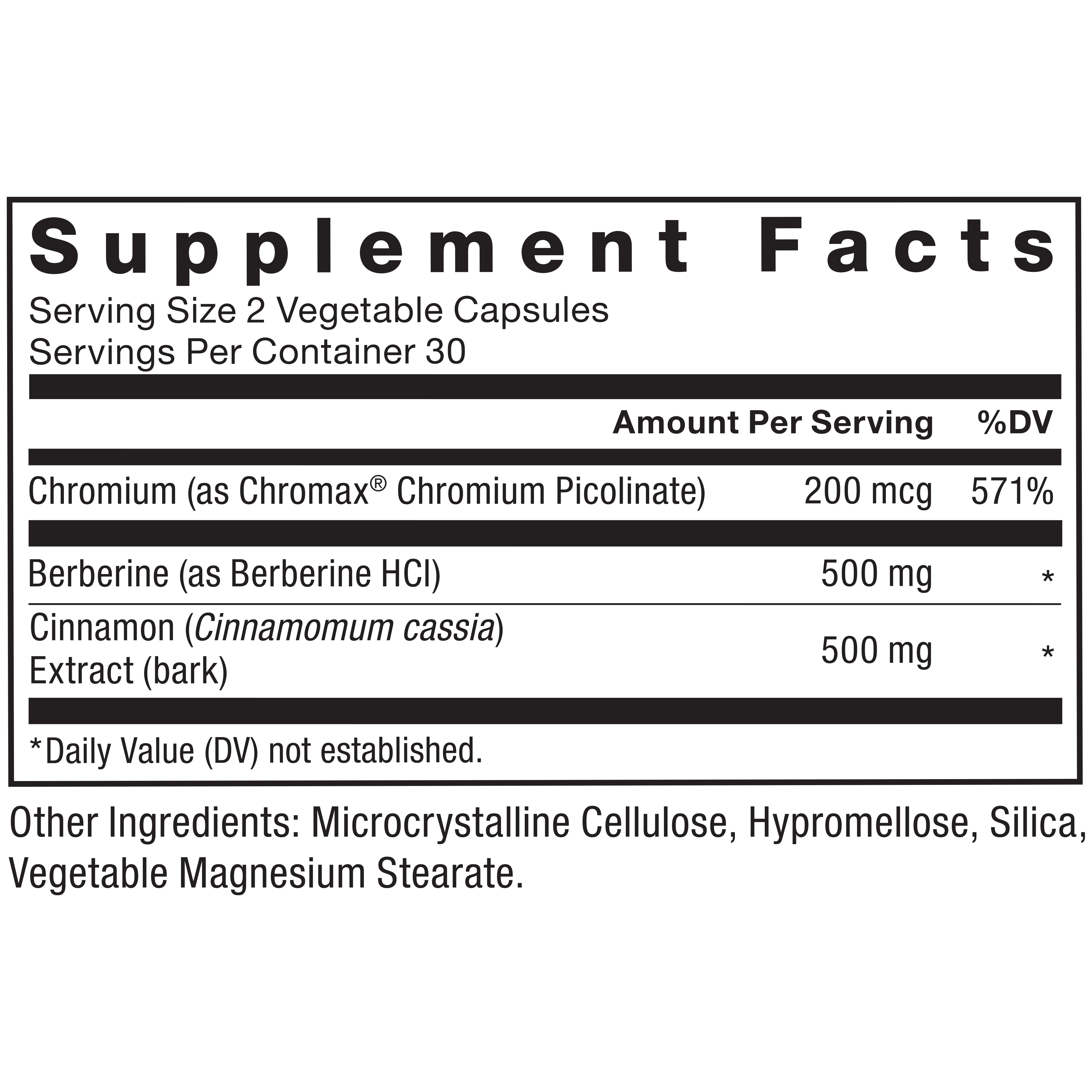 Combined with berberine, cinnamon can help support blood glucose levels, enhance insulin sensitivity, and support overall metabolic health.