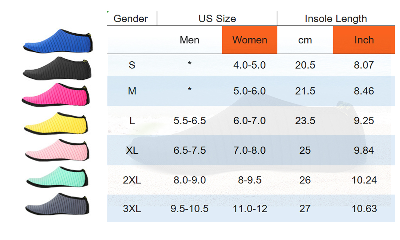 Unisex Barefoot Water Skin Shoes Aqua Socks Beach Sock Pool Quick-Dry S Orange