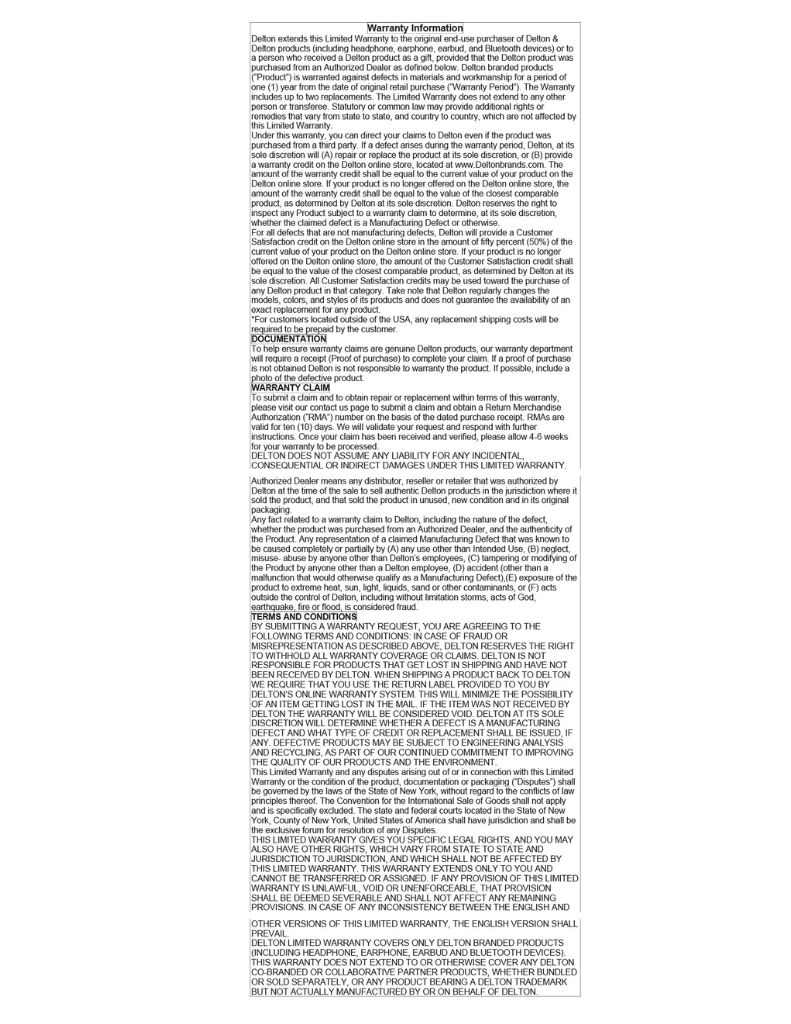 - Warranty: 1 years parts-and-labor warranty provided by Delton.