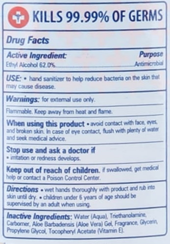 CONTAINS ETHYL ALCOHOL – Alcohol based 62% by weight 70% by volume