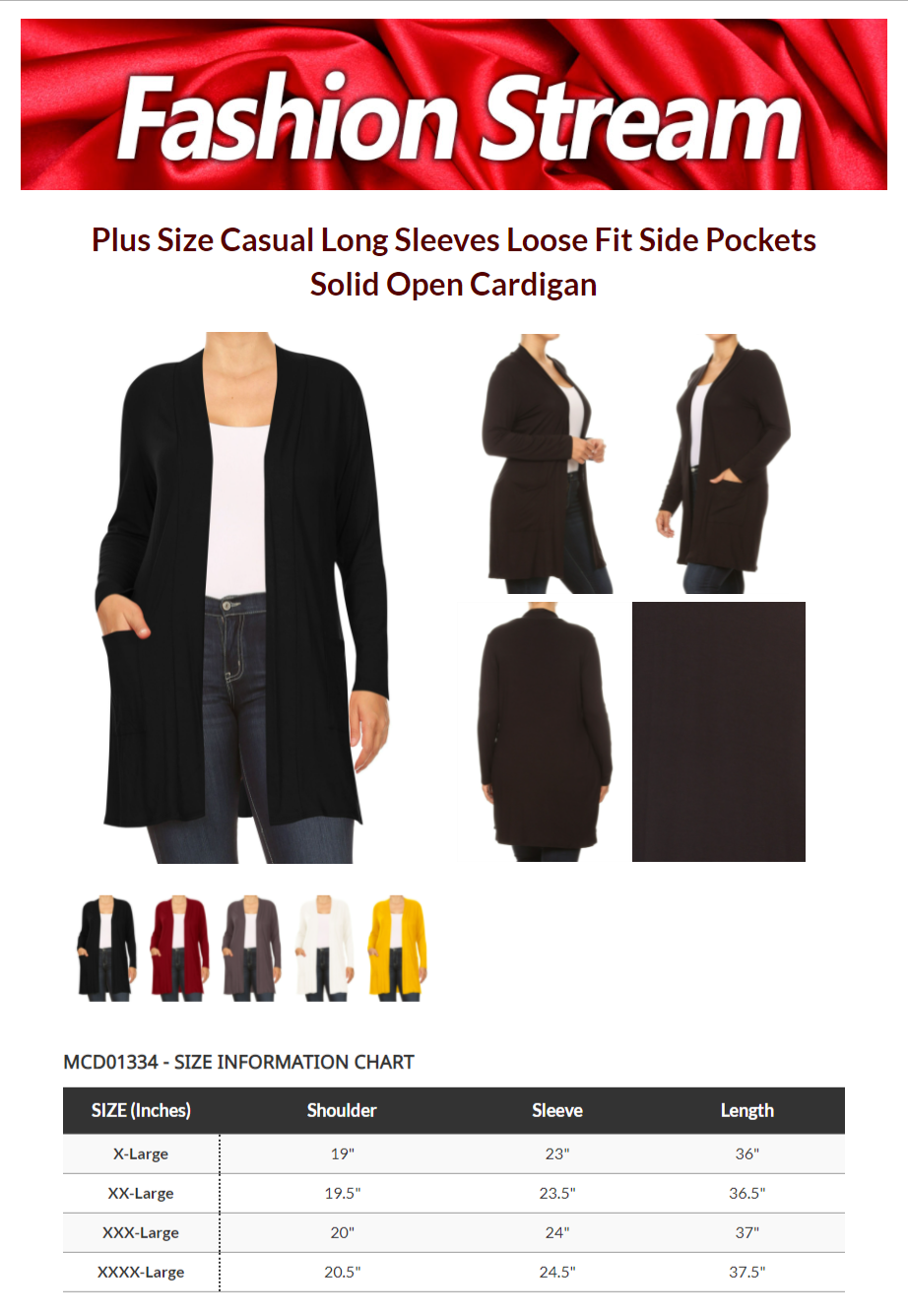 - Lightweight, Loose Fit, Stretch, Solid Color, Open Front, Comfy, Soft, Midi Length, Side Pockets, Long Sleeve