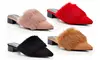 Women's Fuzzy Fur pointy Toe Slip On suede Mules