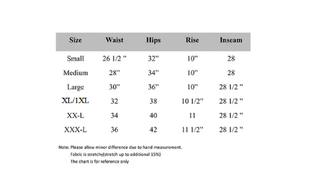 - Front rise: Approx. 12" ; Inseam: Approx. 28"