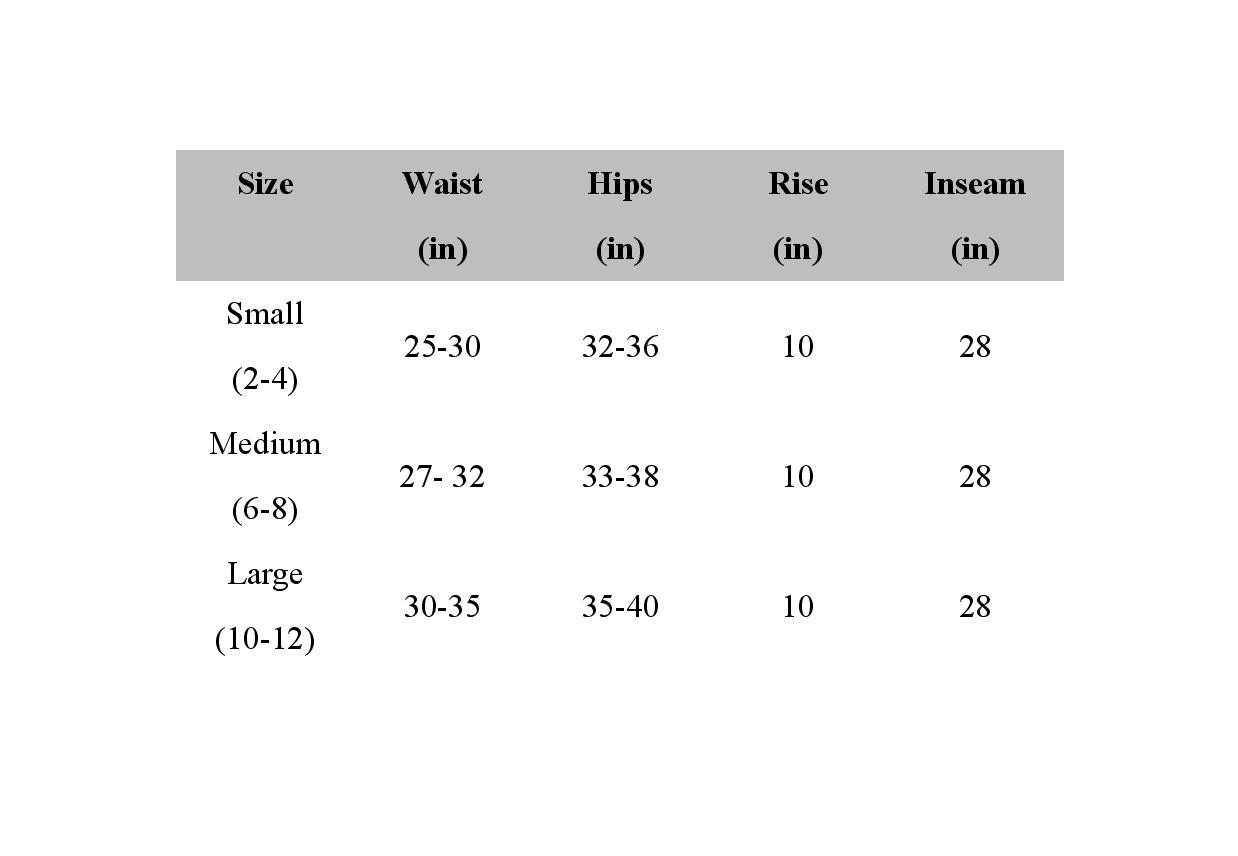 - Front rise: Approx. 12" ; Inseam: Approx. 28