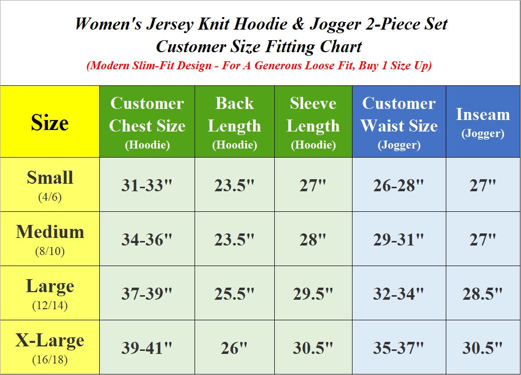 Women's Jersey-Knit Zip Up Hoodie & Jogger Pant 2-Piece Set (Sizes, S-XL) Black Set Large (12/14)