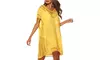 HIGHEST GRADE FABRIC --- Smooth Soft fabric, durable, quick-drying, pro-skin, make it easy to full on and very comfortable to wear.STYLE & MODEST --- Great beach cover for women, Mesh hem, V-Neck, perfect for beach, vacation, swimming pool, poolside tanning salon, Water Park, daily life and so on. Also a good idea for honeymoon gift and birthday gift.RELAXED LOOSE STYLE --- Oversized design makes this cute swimsuit cover up more comfortable and easy to pull on or take off.One Size fits most women. Off shoulder or casual V neck wear. two style for you. Special enough as swimsuit cover ups for womenCool t-shirt material, not only a beach cover ups, also a T-shirt dress for women.Special Tassel hem and soft fabric make it different from other normal swimsuit coverups.