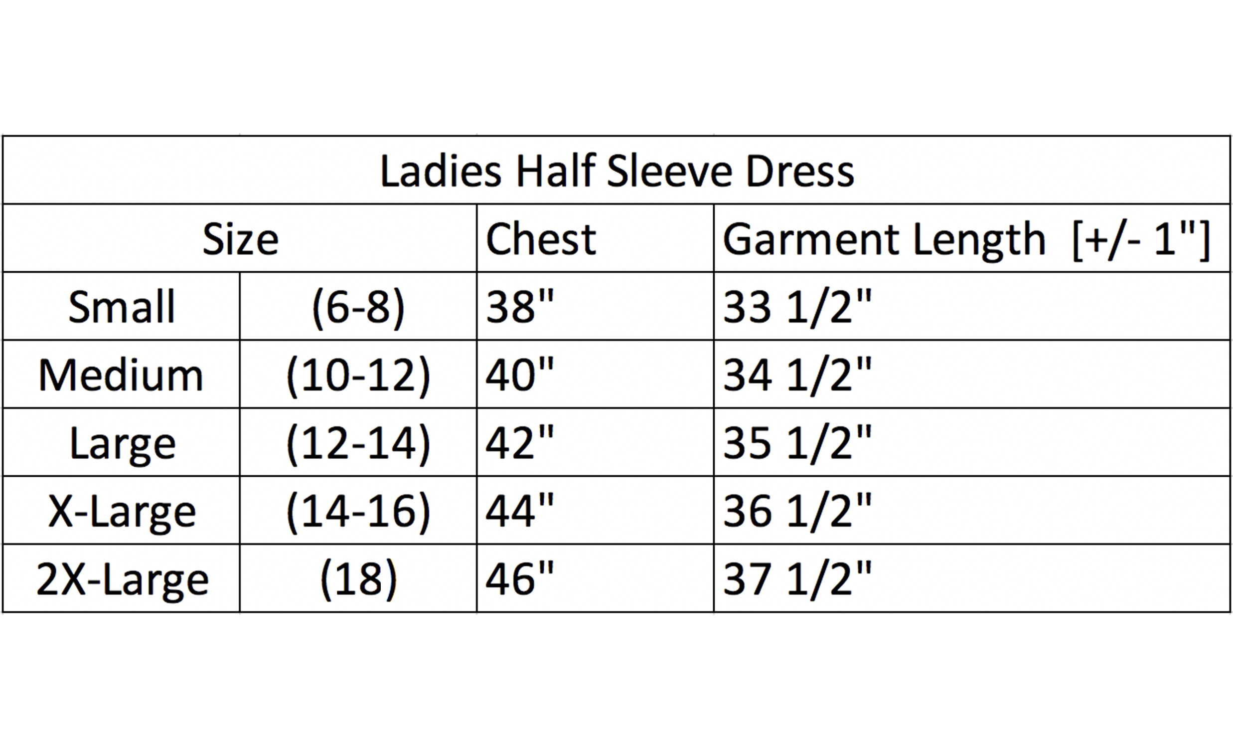 - Sizing Chart: Custom