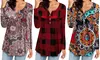 Womens Sexy Print Leisure Button Long-Sleeve Blouse Tunics Floral Printed 3X Red Plaid