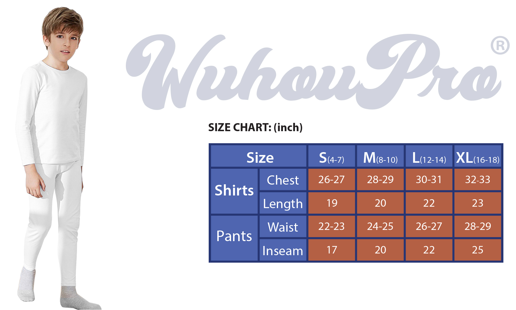 WuhouPro Boy's Ultra Soft Microfiber Fleece Thermal Underwear Sets WHITE XL (16-18)