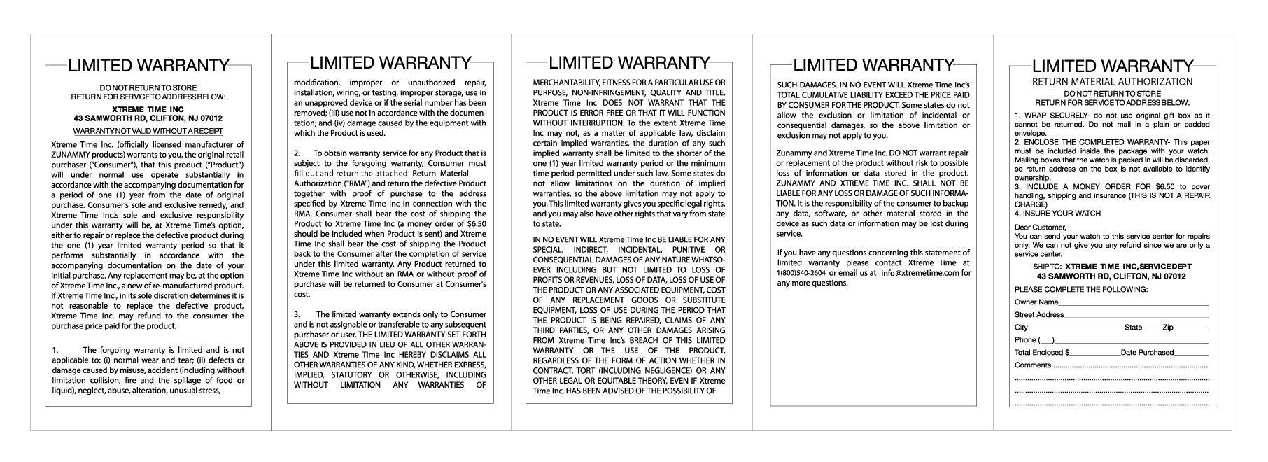 - Warranty: 12 months parts-and-labor warranty provided by Xtreme Time Inc.
