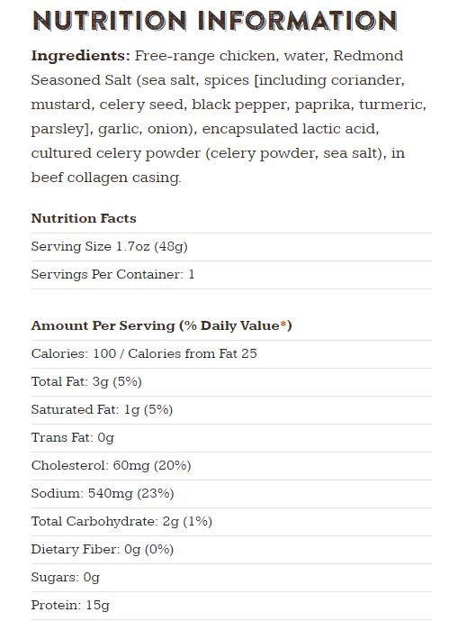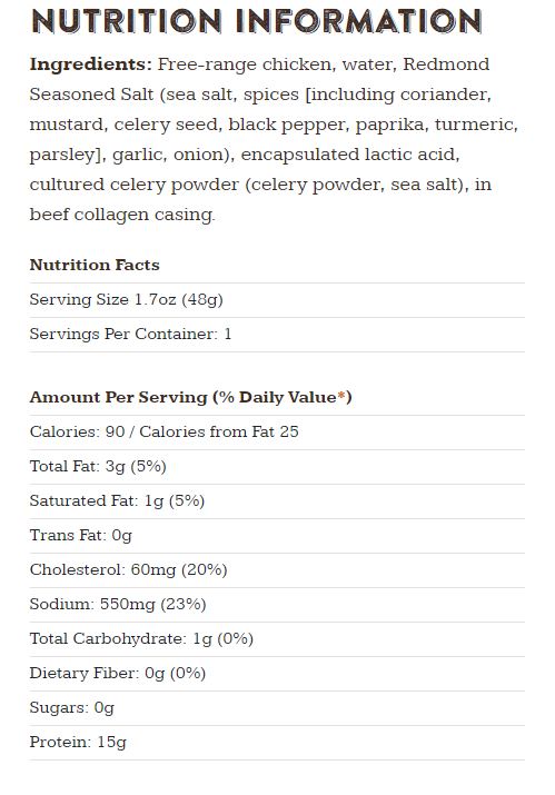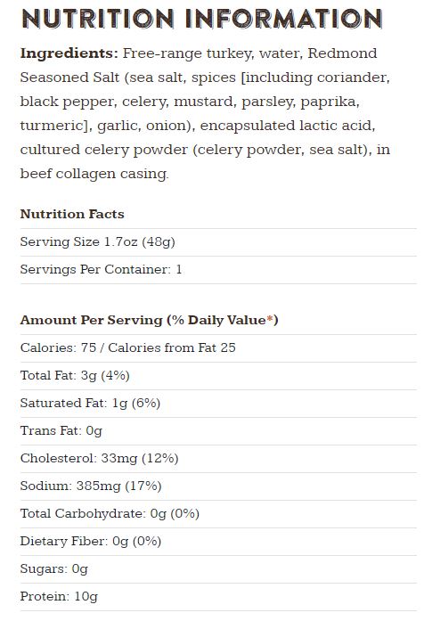Try six flavors of these snack sticks made from grass-fed beef, free-range turkey, or free-range chicken and organic seasoned salt
