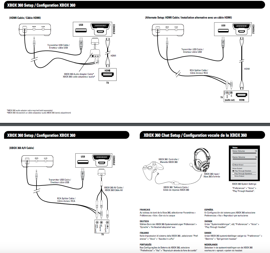 - Includes XBOX 360 Talkback Cable and RCA Splitter Cable