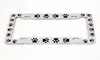 Pay tribute to your pet with this metal license plate frame, which features a mirror-polished chrome finish embossed with black paw prints