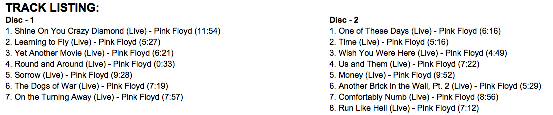 Pink Floyd: Delicate Sound Of Thunder Live Album on 2 CDs