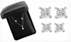 14k white-gold earrings and pendant necklaces set with princess-cut white diamonds and plated in polished rhodium