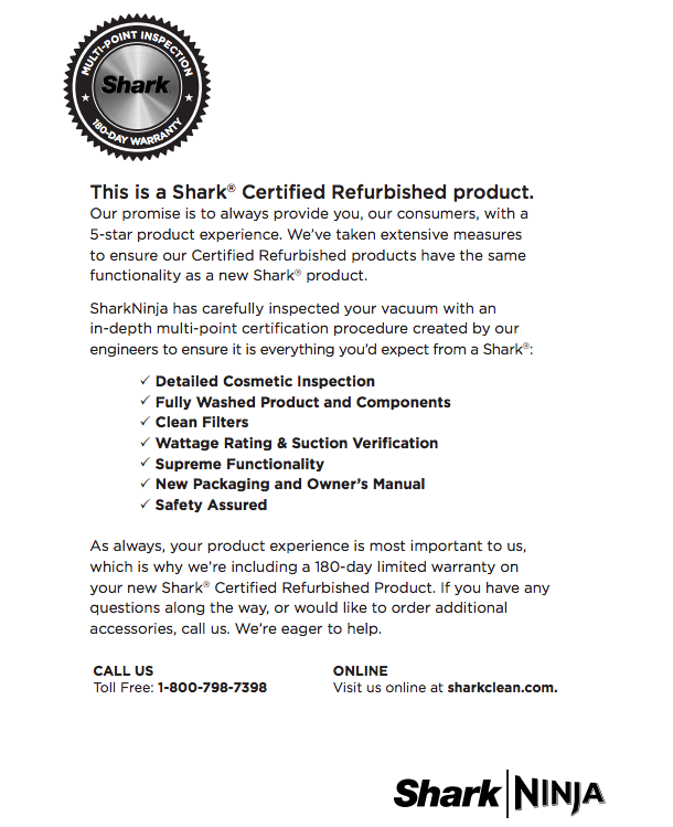 - 180-day limited warranty from Shark.