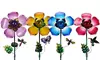Light automatically turns on at dusk, and its glass petals shimmer as they catch the beams from the bulb or the sun
