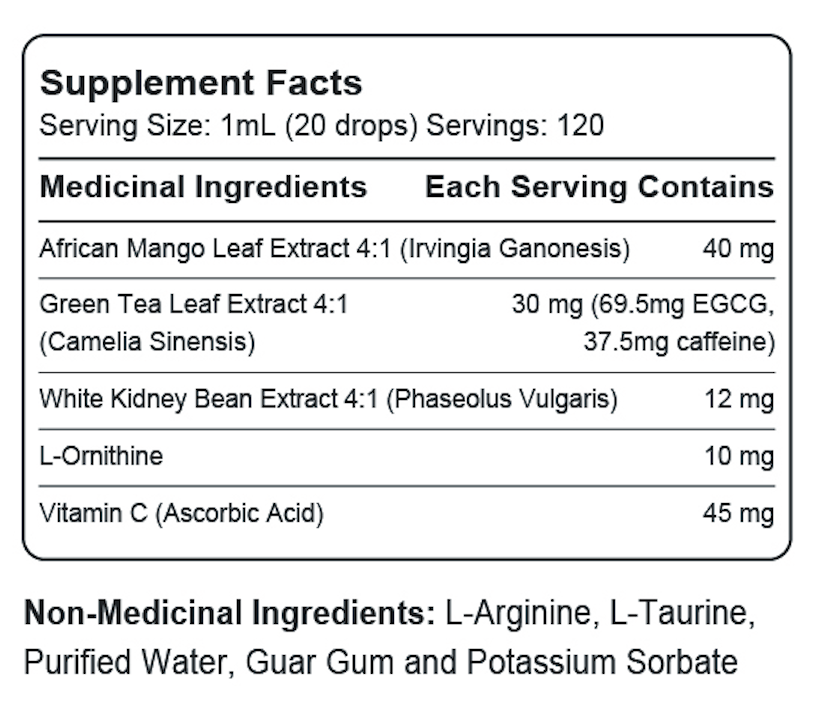Drops formulated to reproduce the potential weight-loss benefits of the HCG hormone and suppress appetitie