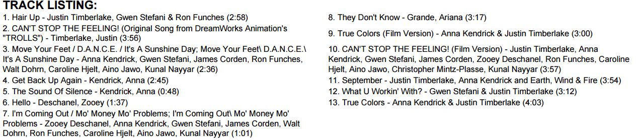 - Official soundtrack to Trolls, the new animated film inspired by the Troll dolls