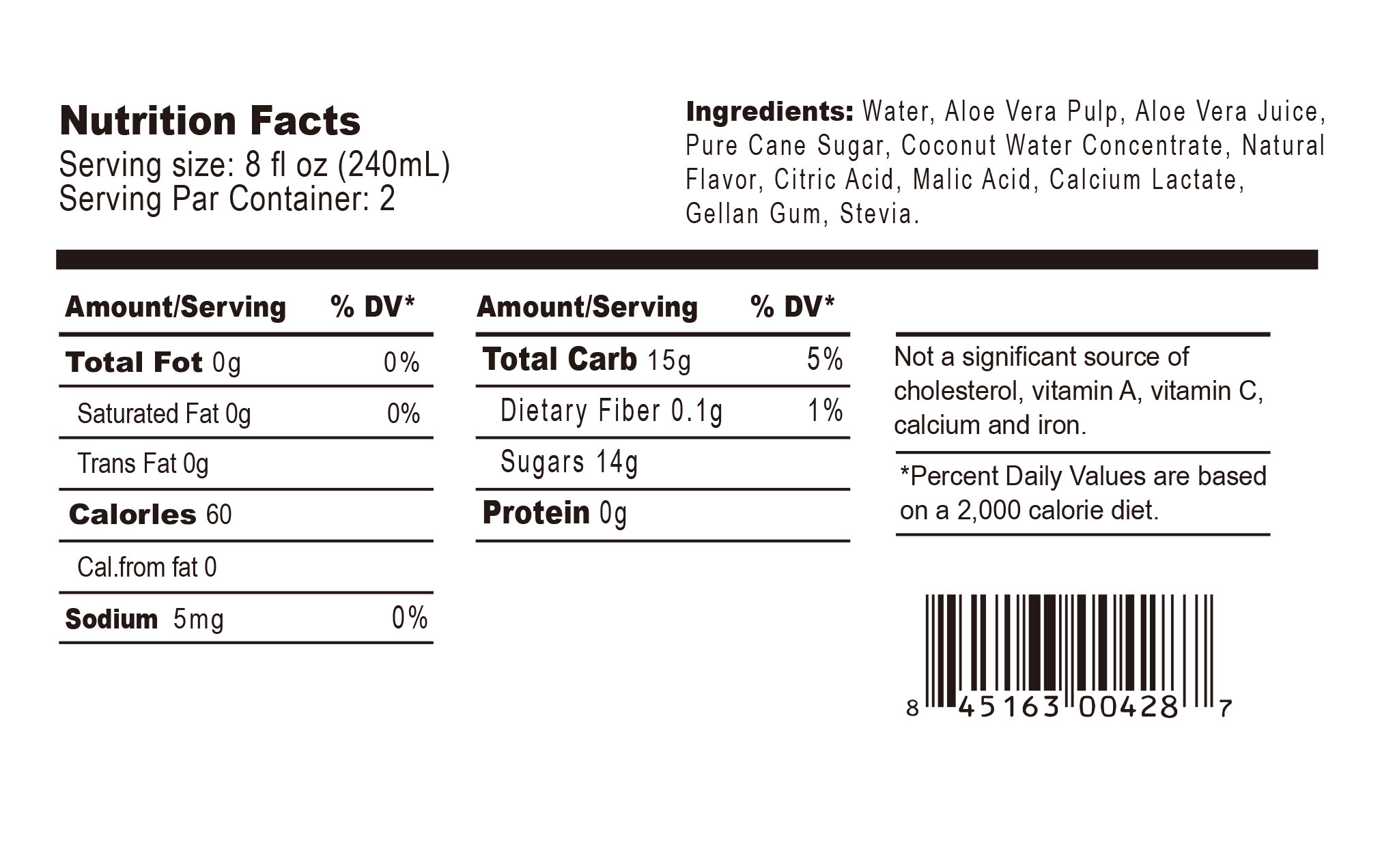 Refreshing natural drinks made with real aloe vera chunks stay tasty while avoiding artificial flavors or fructose
