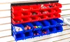 - Includes 18 small red bins and 12 large blue bins